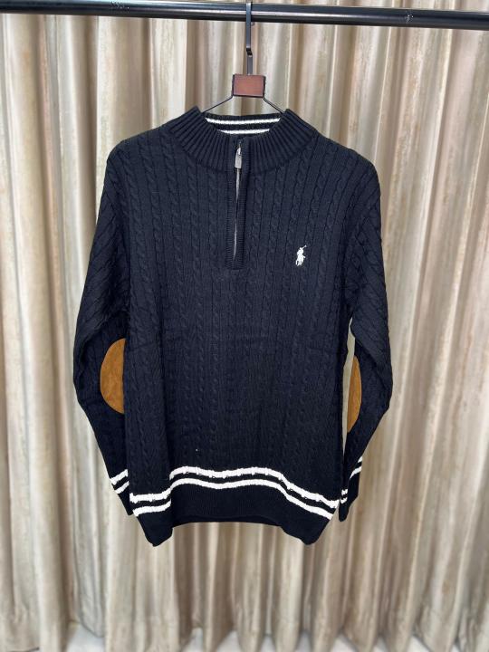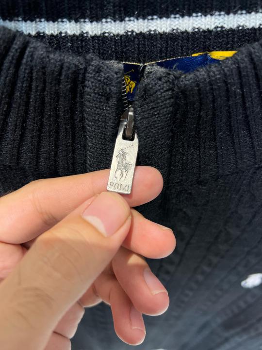 BLACK POLO RALPH LAURE_N CABLE KNIT QUARTER ZIP PREMIUM SWEATER