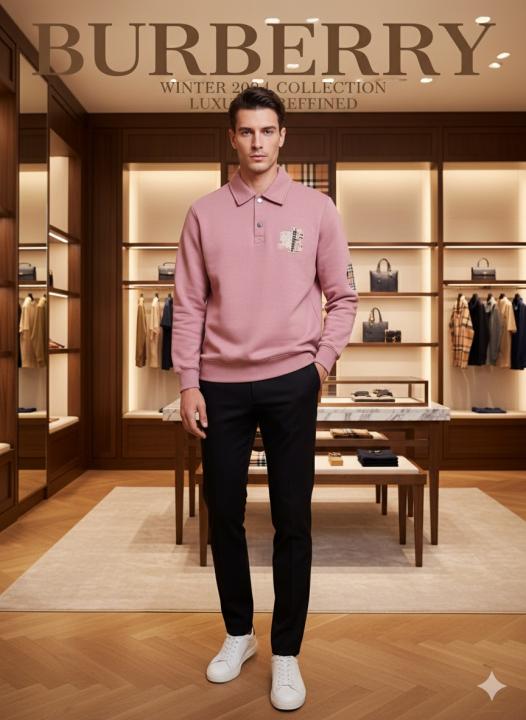 *BURBERRY LONG SLEEVE POLO STYLE SWEAT SHIRT WITH EMBROIDERED LOGO*