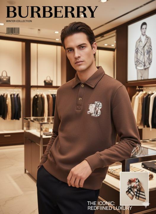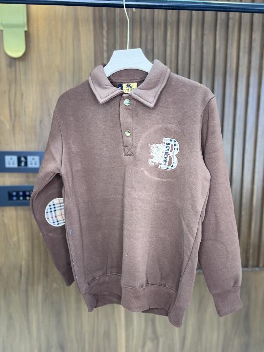 *BURBERRY LONG SLEEVE POLO STYLE SWEAT SHIRT WITH EMBROIDERED LOGO*
