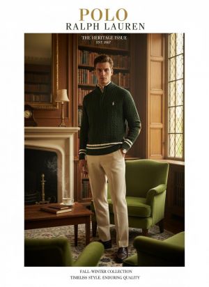 GREEN POLO RALPH LAURE_N CABLE KNIT QUARTER ZIP PREMIUM SWEATER